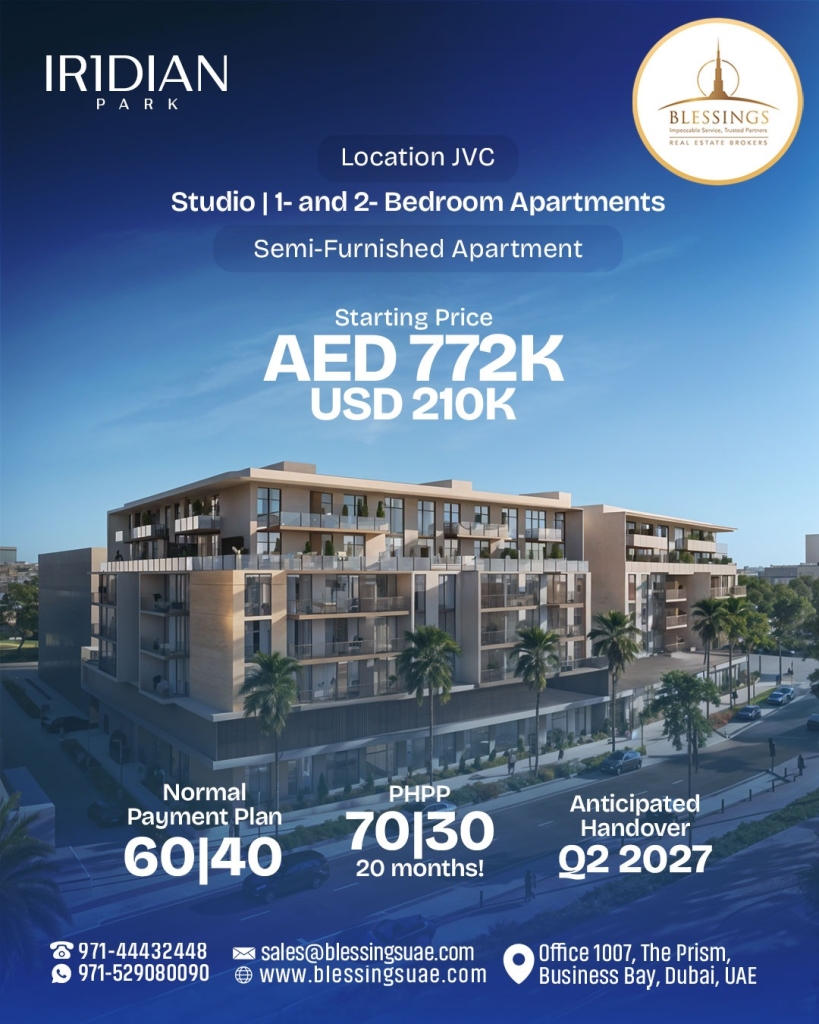 A residential gem inspired by the brilliance of iridescence Starting Prices AED 722000 /- PAYMENT PLAN During Construction 60 % On Handover 40 % OR During Construction 70 % 20 Month Post Handover Paymant Plan 30 % Handover 2027 AMENITIES...